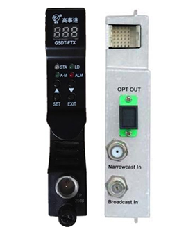 GSDT-FTX光發(fā)射機模塊是專門為現(xiàn)在和將來之HFC及FTTH應用而設計的1310nm直調光發(fā)射機。發(fā)射機使用高性能制冷型1310nm DFB光源,采用先進的預失真電路,使系統(tǒng)具有良好的CTB和CSO特性,其嵌入式單片機處理電路監(jiān)測和控制所有的參數狀態(tài)及遠程通信,可以通過訪問前面板之LED或EMS設備管理模塊來獲取這些參數信息。